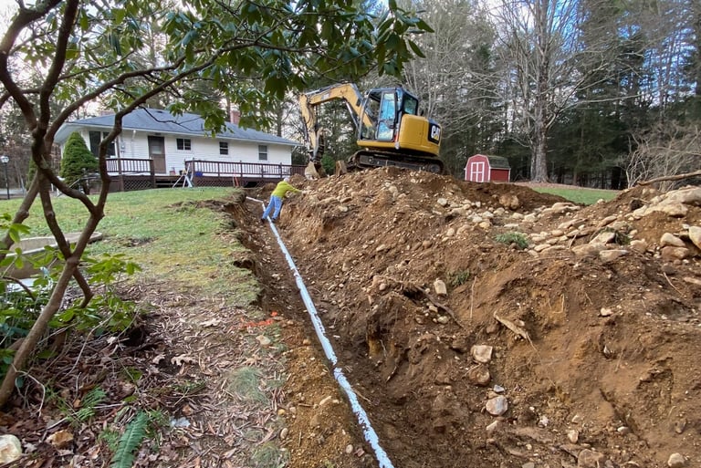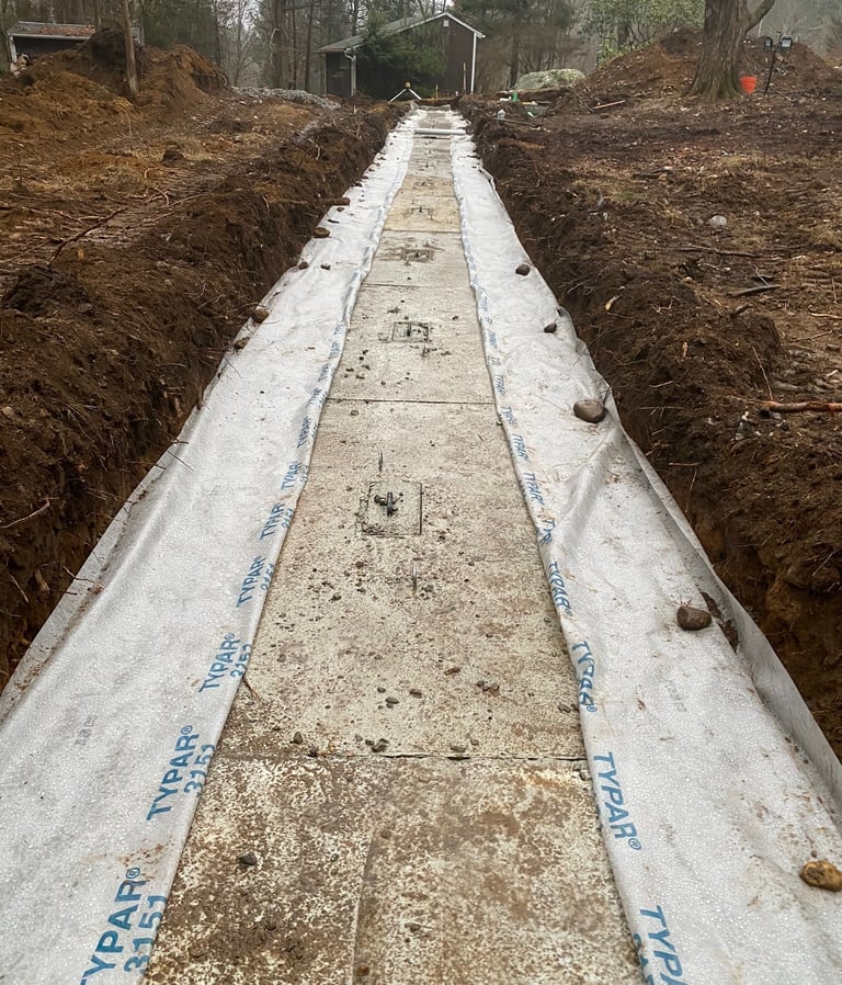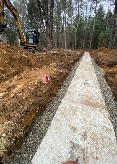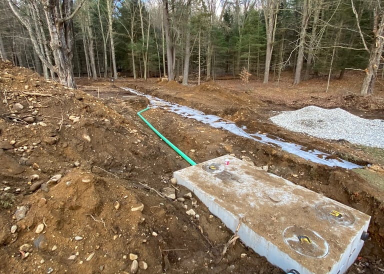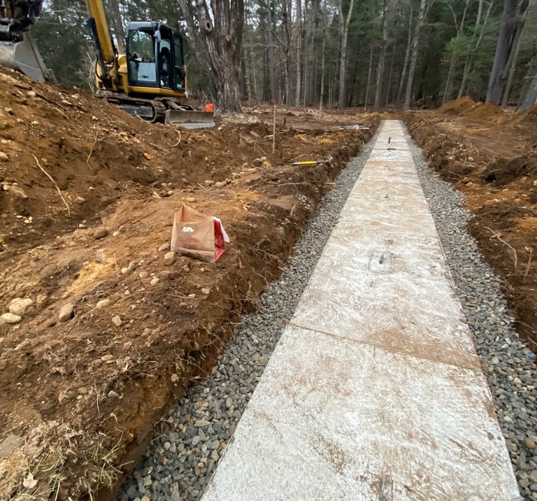 We handle complete septic system installations, from perc test coordination to final grade. Working from engineered plans, we install tanks, distribution boxes, and leaching fields with a focus on efficiency, compliance, and long-term reliability.